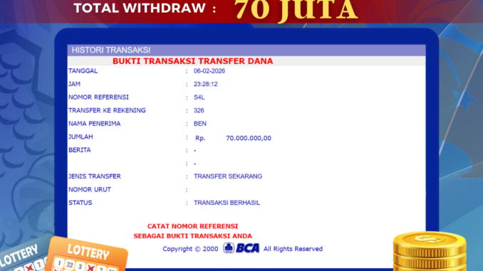 Bukti transfer yang dapat anda lihat adalah bukti SAH / VALID yang langsung di dapatkan melalui bukti transaksi dari Bank yang digunakan untuk pengiriman dana pada rekening pemilik user id. Terima kasih kami sampaikan kepada para pengguna setia BOLAGILA yang telah menggunakan situs kami, sebagai Bandar Terpercaya yang pastinya membayar semua kemenangan member hingga lunas. Apakah BOLAGILA PENIPU ? Reputasi “BOLAGILA TERPERCAYA” sudah sangat melekat.