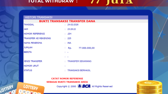MEMBER BOLAGILA MENERIMA PELUNASAN JACKPOT TOGEL DI JAKARTA 5D Rp 77.000.000,- LUNAS