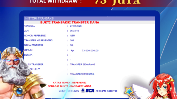 Bukti transfer yang dapat anda lihat adalah bukti SAH / VALID yang langsung di dapatkan melalui bukti transaksi dari Bank yang digunakan untuk pengiriman dana pada rekening pemilik user id. Terima kasih kami sampaikan kepada para pengguna setia BOLAGILA yang telah menggunakan situs kami, sebagai Bandar Terpercaya yang pastinya membayar semua kemenangan member hingga lunas. Apakah BOLAGILA PENIPU ? Reputasi “BOLAGILA TERPERCAYA” sudah sangat melekat.